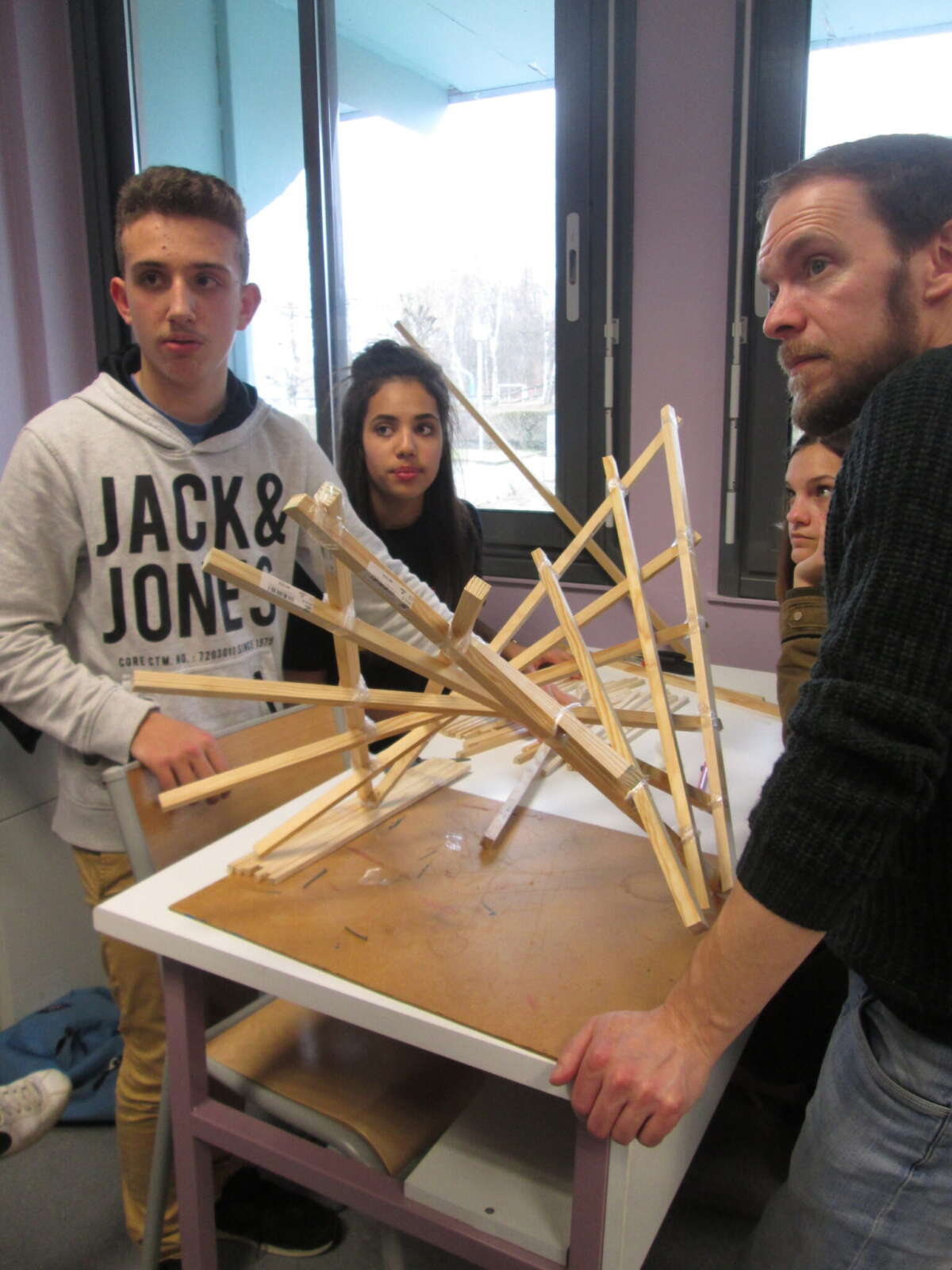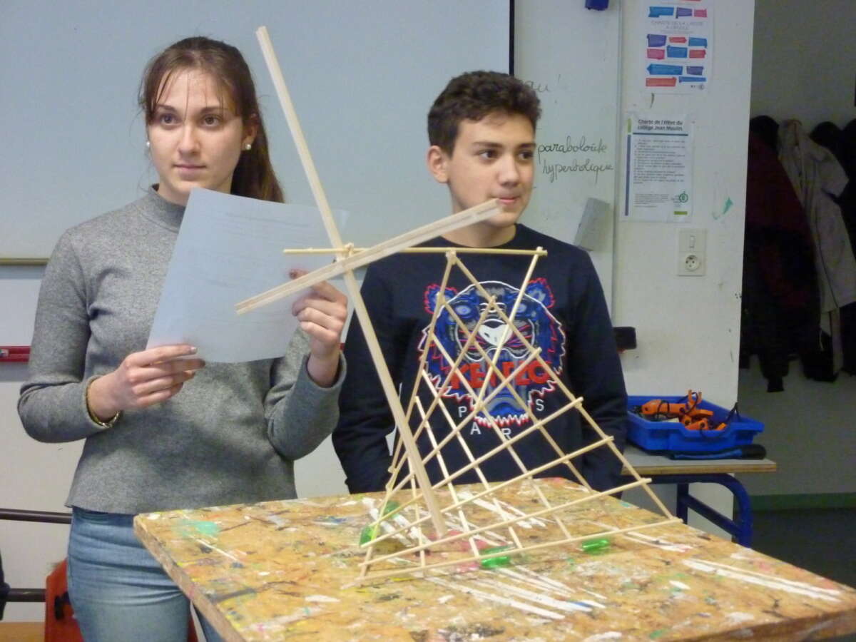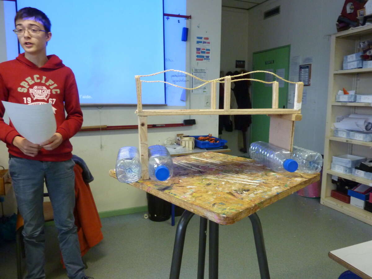 Pour les élèves, travailler avec un artiste a permis de réaliser un projet plus ambitieux que dans les cours hebdomadaires d’arts plastiques. Ainsi, ils ont pu faire une réalisation finale aboutie et de grande taille, et ils ont pu sortir de l’établissement pour expérimenter leur construction.