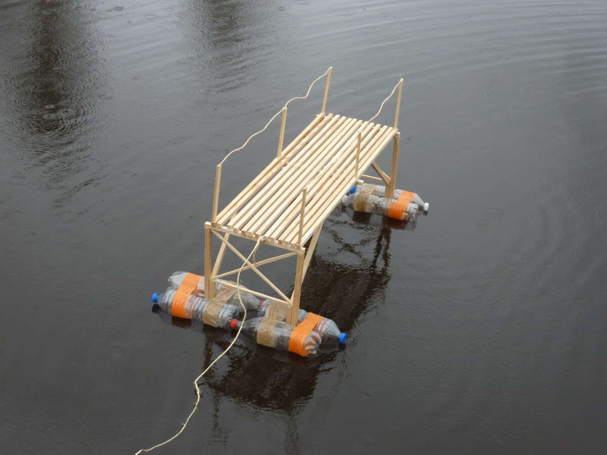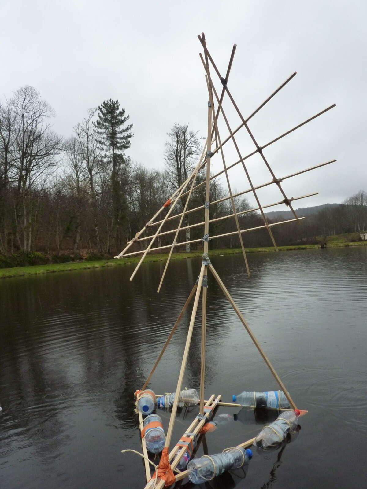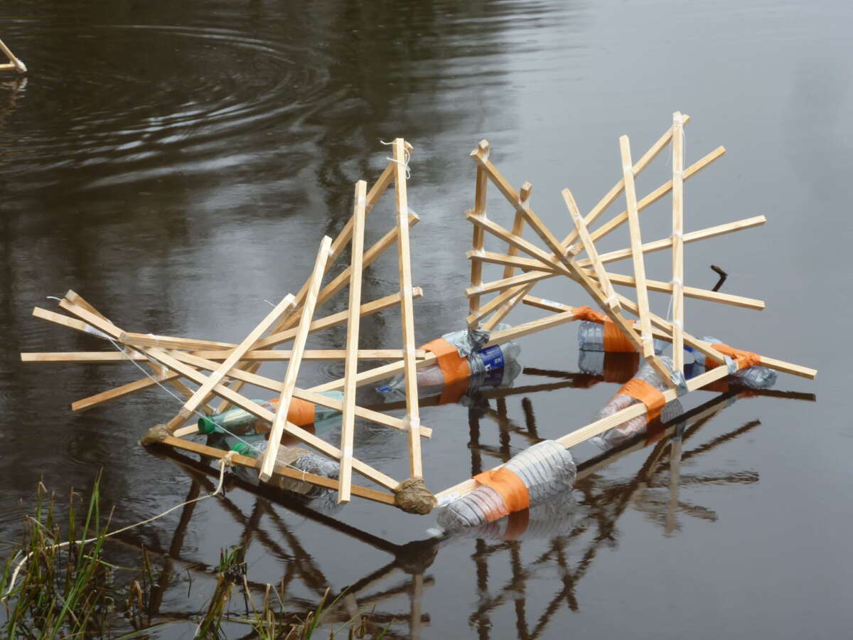 Après une première rencontre avec l’artiste, ce projet s’est construit sur deux journées de travail en établissement. Cela a permis aux élèves de plonger de manière immersive dans les questionnements plastiques, d’avoir le temps d’expérimenter et de remédier à leurs difficultés techniques. A la fin de ces deux jours, une première expérimentation des sculptures flottantes à été réalisée sur un petit lac aux abords du collège.