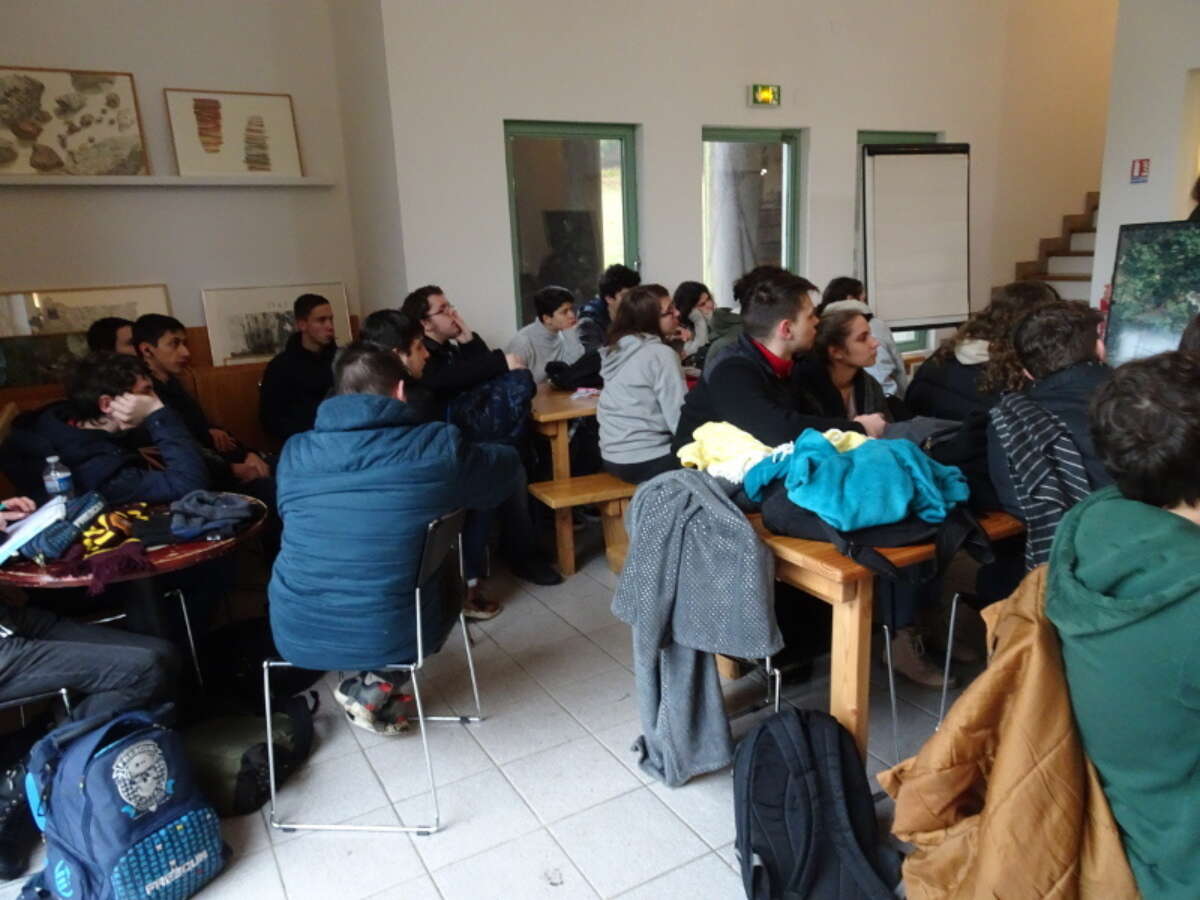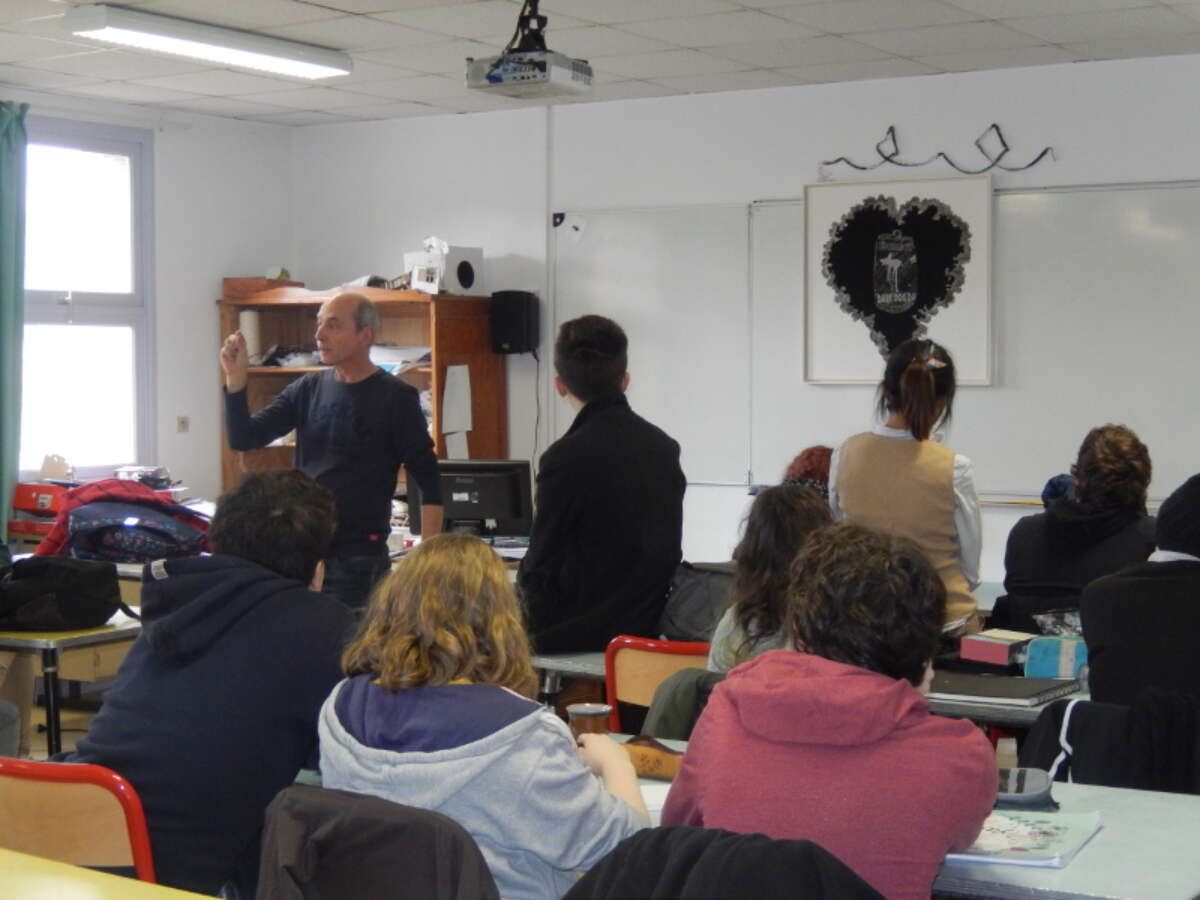 Ce workshop a été organisé à l’échelle de tous les élèves qui suivaient l’option arts plastiques au Lycée d’Aubusson. Cela représentait une quarantaine d’élèves. Ce choix a l’avantage d’impliquer de manière collégiale et de faire remarquer le projet. Cependant, cela s’est révélé être un peu lourd pour l’ensemble des participants, artiste et enseignante.